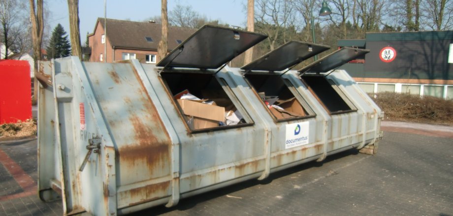 Am Samstag, 7. März 2026, stehen in der Zeit von 10.00 – 12.00 Uhr Sammelbehälter der Firma documentus aus Harsewinkel auf dem Parkplatz am Steinhagener Gymnasium, Am Cronsbach 1, bereit.