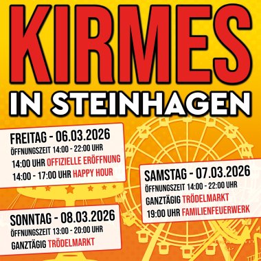 Am Freitag, den 06. März 2026 startet wieder unsere beliebte Frühjahrskirmes in Steinhagen.